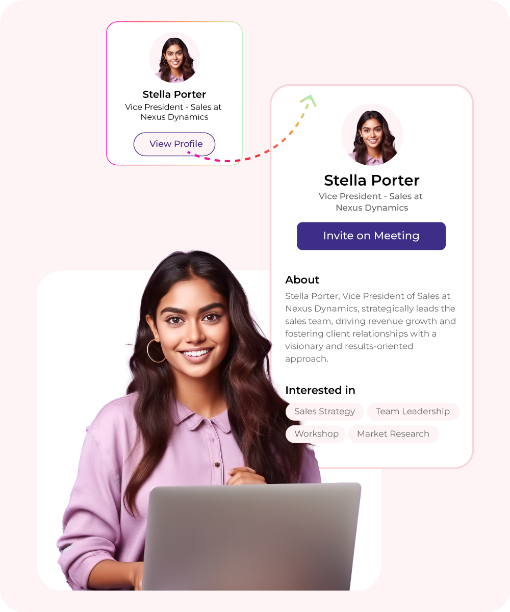 Our advanced matchmaking platform connects you with exhibitors, attendees, and speakers based on your preferences, and business objectives. Gain access to a curated list of potential contacts, ensuring meaningful interactions that align with your professional goals